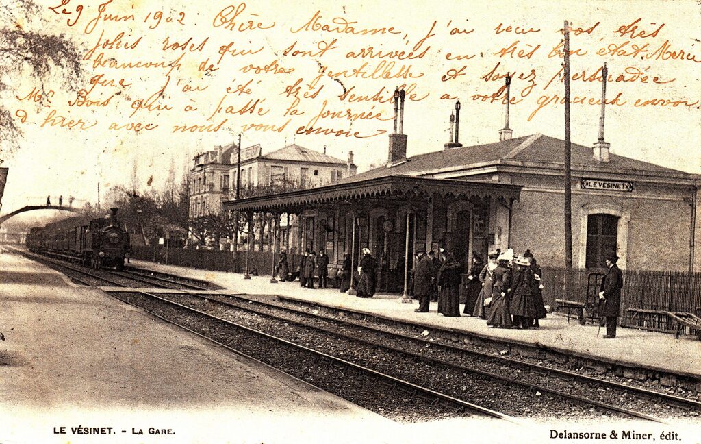 La gare du Vésinet « Centre », ouverte en 1861, permettait aux voyageurs arrivant de la gare Saint Lazare de découvrir ce qui faisait le charme de la « Colonie ».