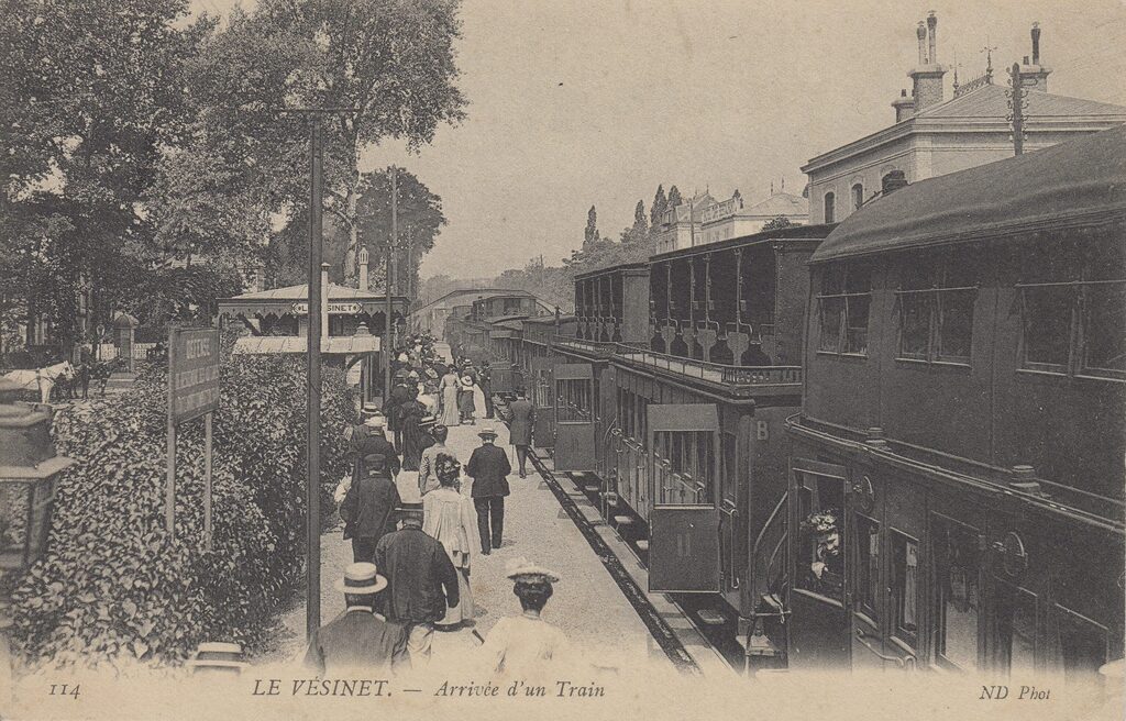 Une foule élégante arrivait de la gare Saint Lazare pour savourer les plaisirs de la nature offerts par la Ville-Parc...