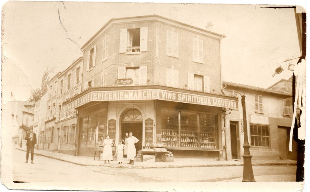A coté, on distingue le dépôt de lait de la Ferme de l’Asile ( Maison Barthélemy) ainsi que l’entrée de la boutique Singer.