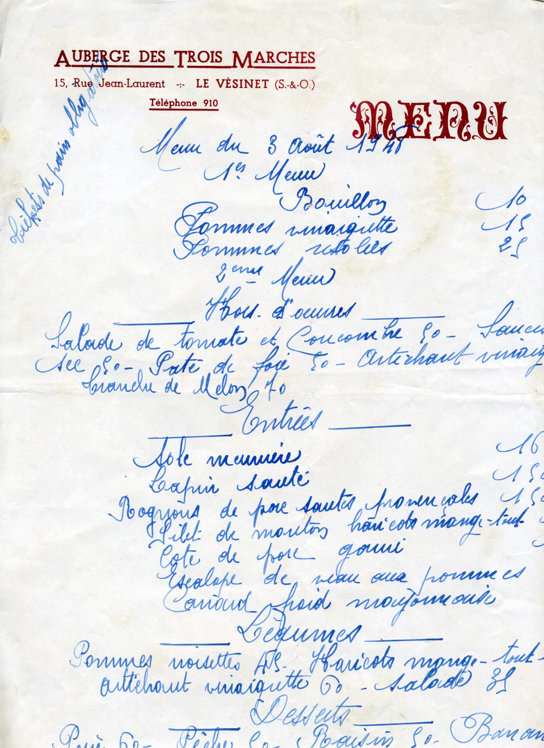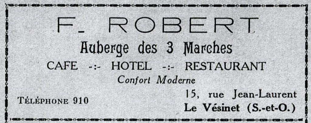 Accueil > Tous les Commerces du Vésinet, d’Hier et d’Aujourd’hui > Auberge des Trois Marches – F. Robert