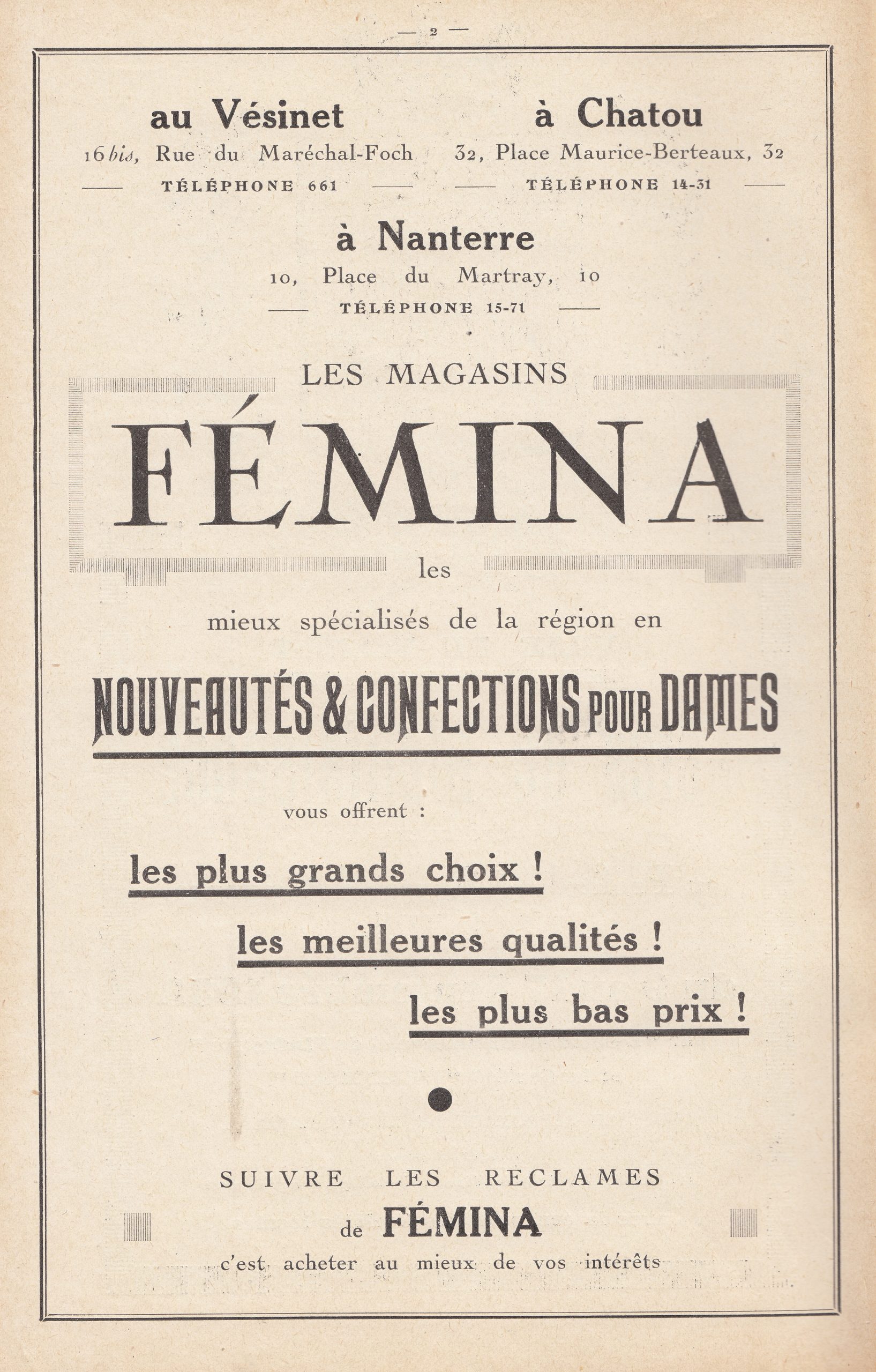Accueil > Tous les Commerces du Vésinet, d’Hier et d’Aujourd’hui > Magasins Fémina